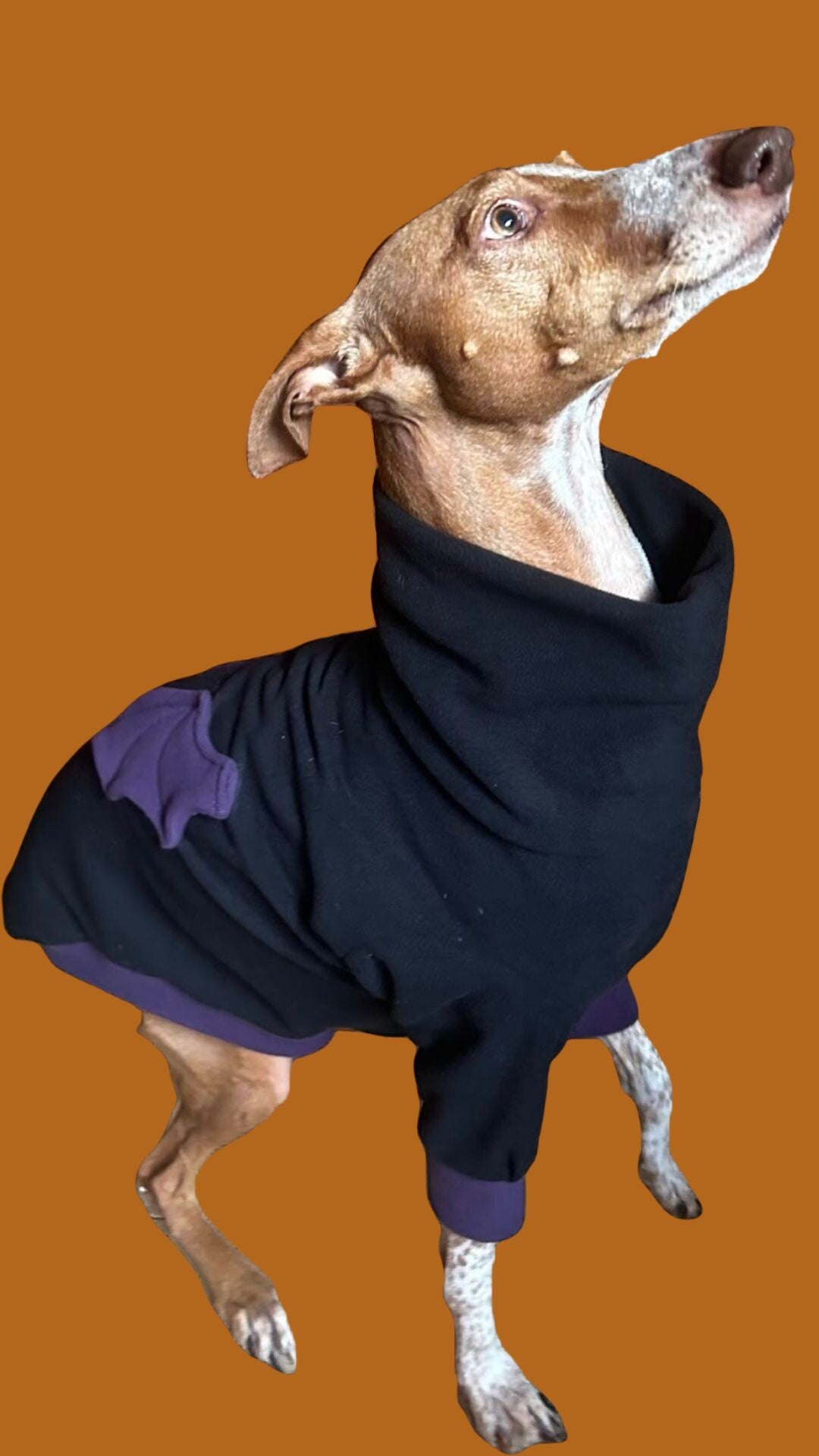 Laat jouw Podenco vliegen in de herfst! De FangTastic is een exclusieve sweater uit onze Howl-O-Ween Drop, ontworpen voor de elegante, slanke bouw van grote Podenco’s zoals de Ibicenco of Canario.